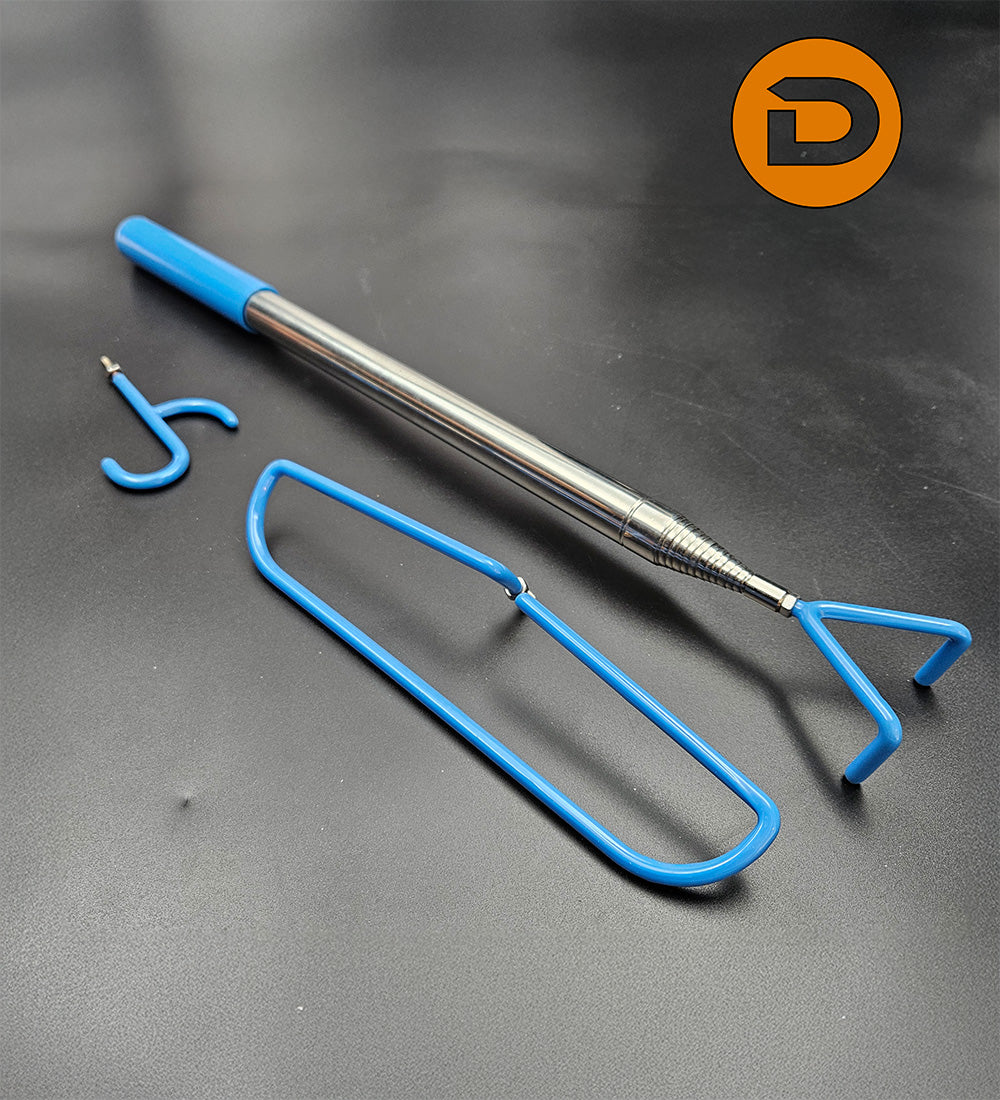 The stainless steel telescoping pole extends up to 16 feet (4,8 meter) to ensure no disc is out of reach