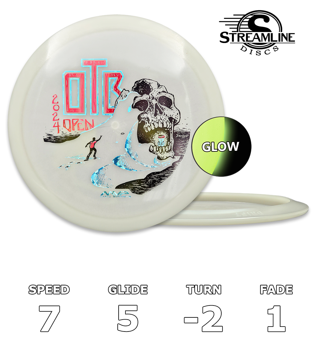 When you see the name Skulboy, you know you’re in for a true piece of art - and he delivers on the Color Eclipse Drift! Comes in Green, Blue, Teal, Purple, and White glow, watch the art come to life when the lights go down. The Drift is a dependable fairway driver that has a ton of utility for players of all arm speeds - lower power players will find a reliable straight-stable workhorse, while higher power players will love the consistency of its subtle flip. Rediscover a Streamline classic with the new release of Color Eclipse for Streamline Discs in the 2024 OTB Open Color Eclipse Drift**!