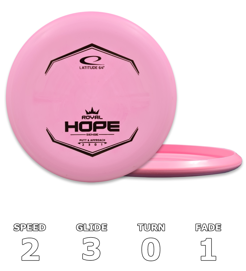 Sense is the grippy putter plastic in Latitudes Royal Line. The combination of a sturdy feel and great grip gives you an edge in the short game.