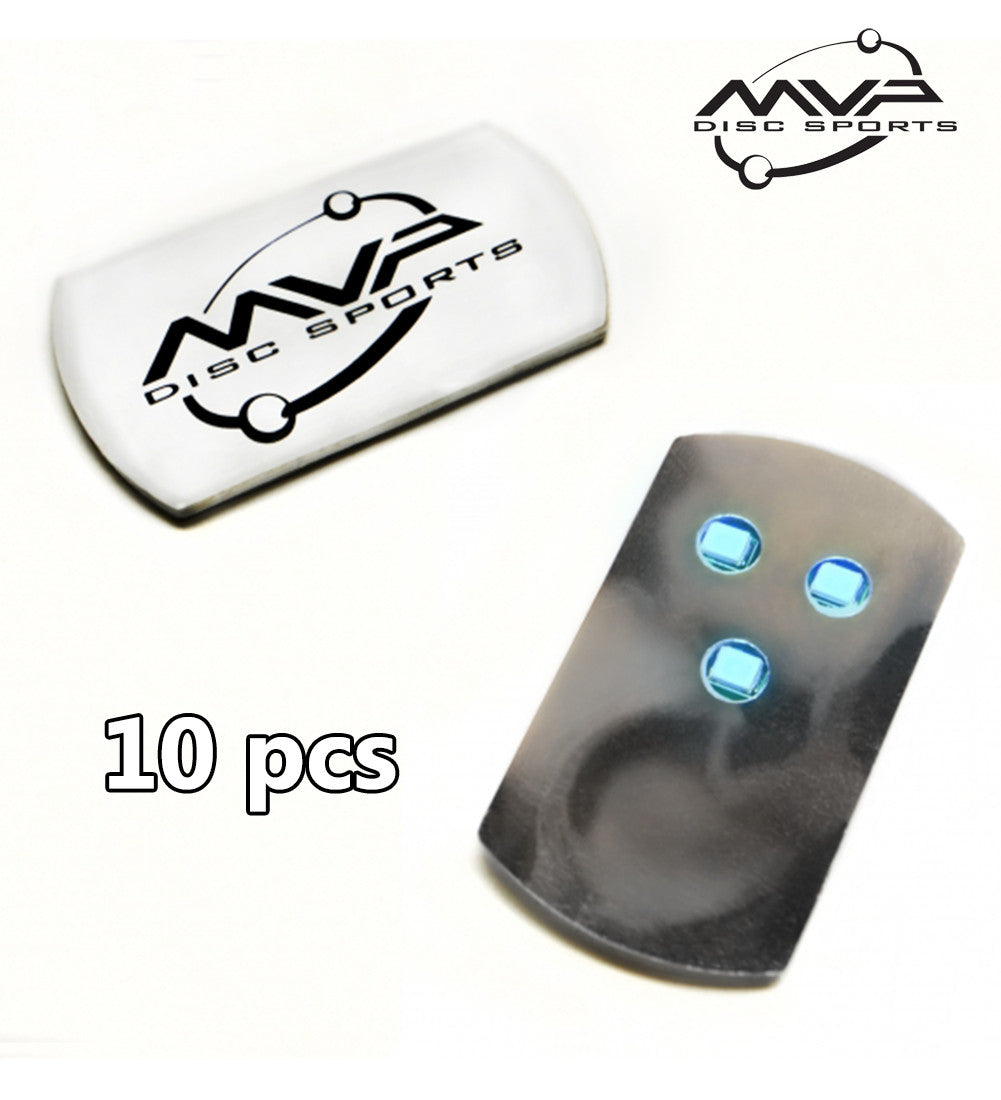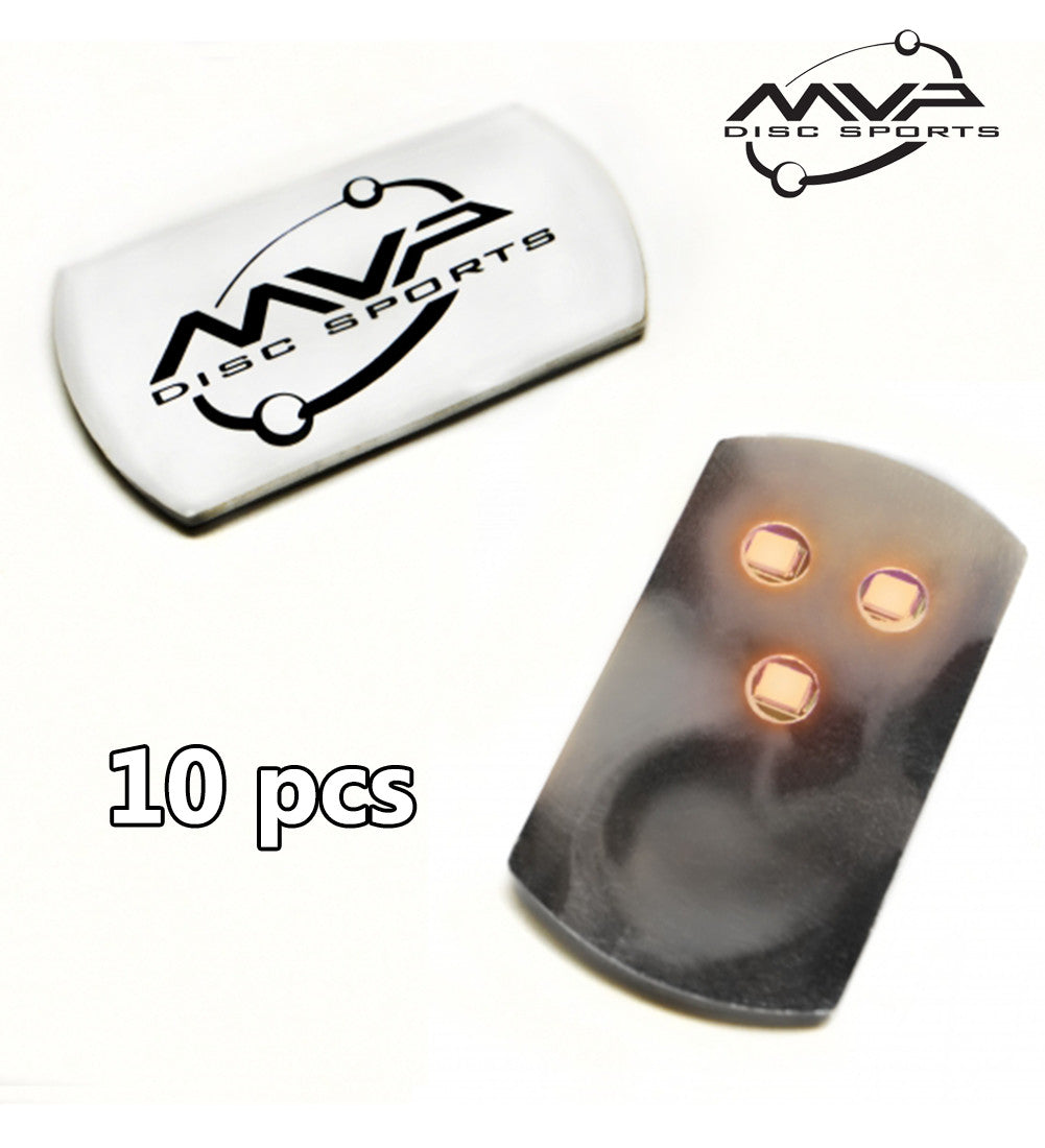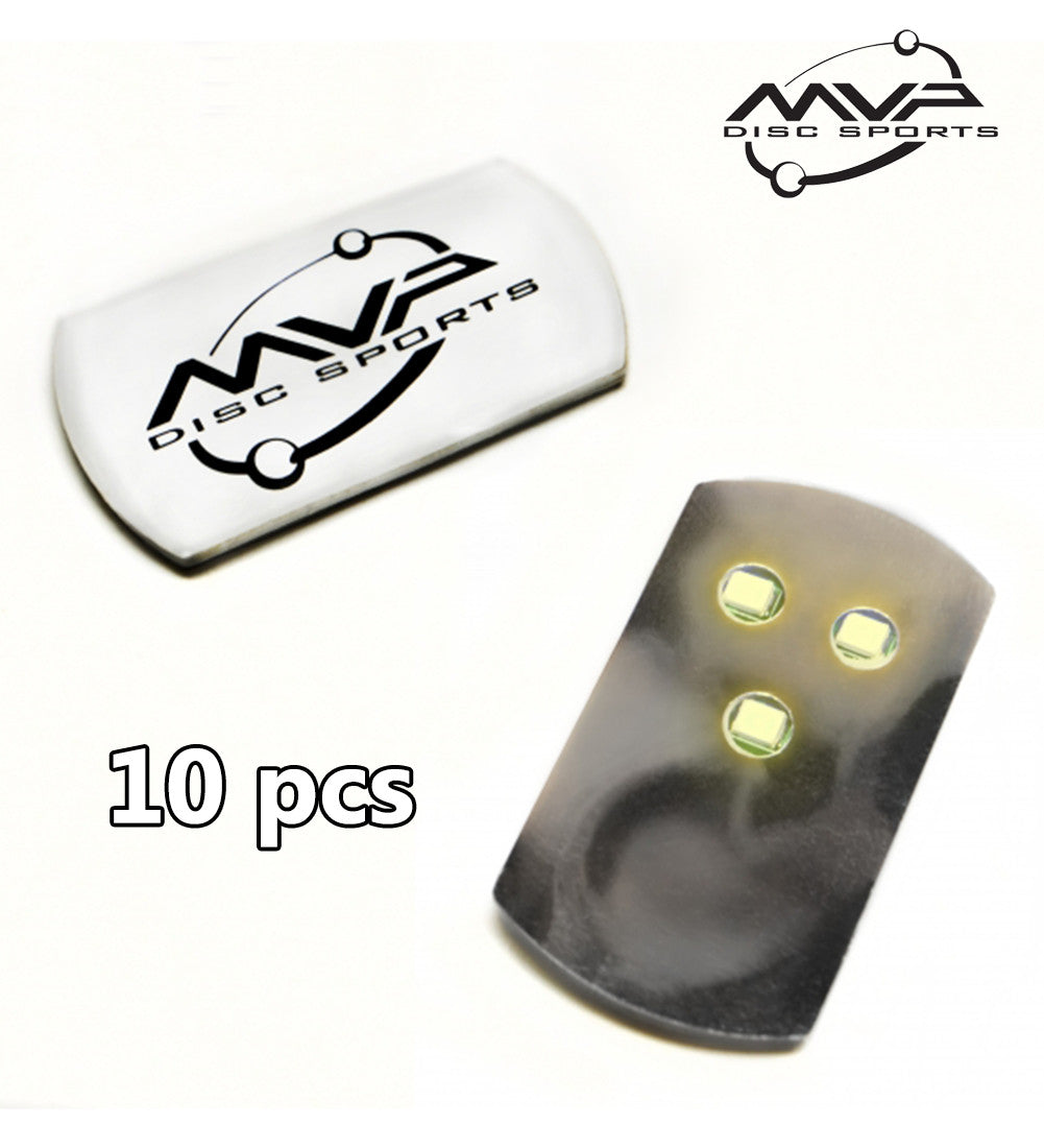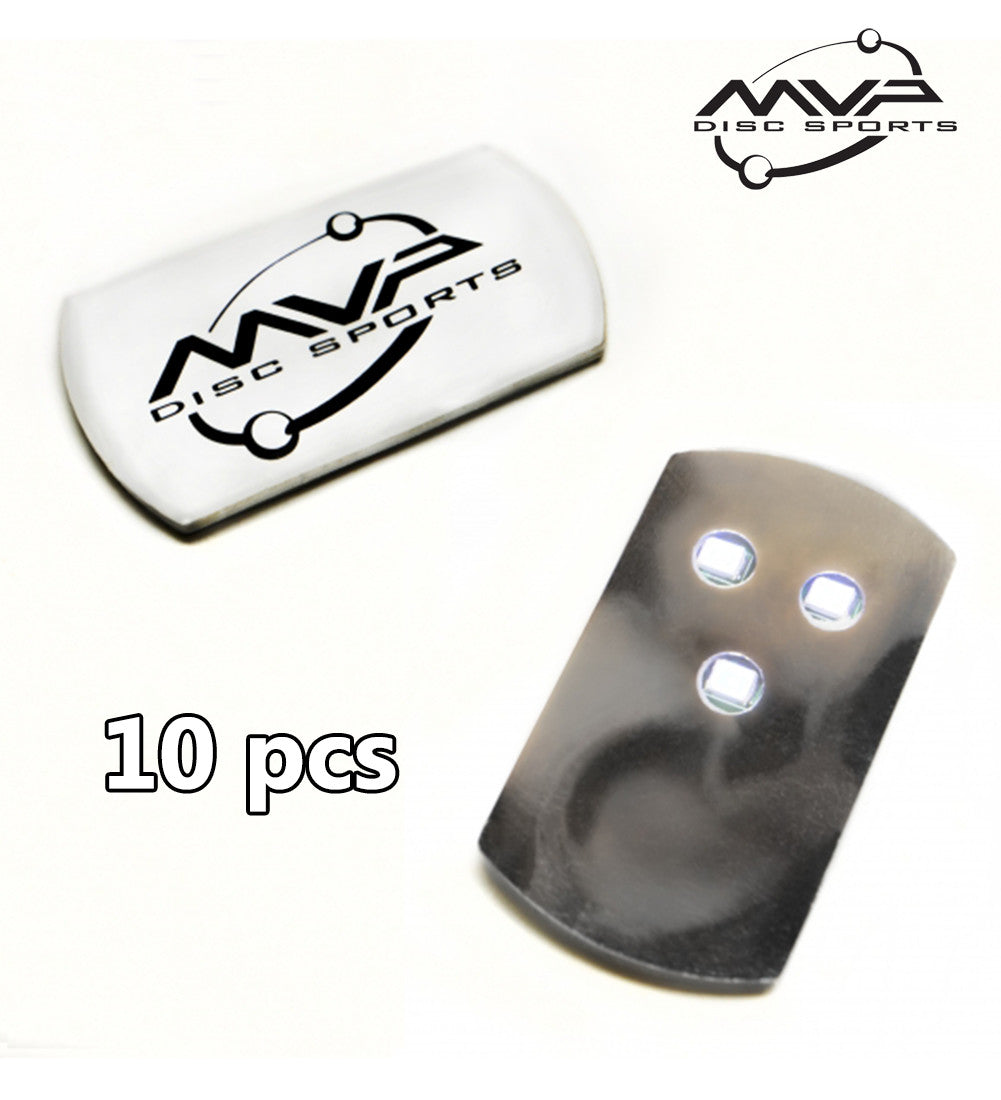 Tri-Lit LED Lights by MVP Disc Sports are improved and better than ever. These familiar micro LED units are designed to be taped to the center of a disc for night play and can be used in a variety of creative ways. A button located between the three lights under the printed MVP logo circuit cover switches power on/off. This Multicolor model auto-cycles beautifully through a range of vibrant color and flash modes using blends of its three LED lights.