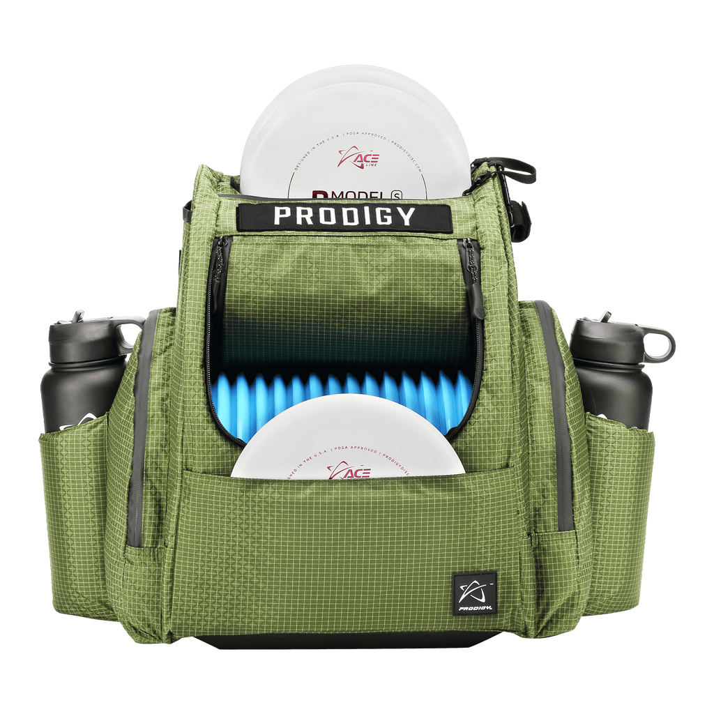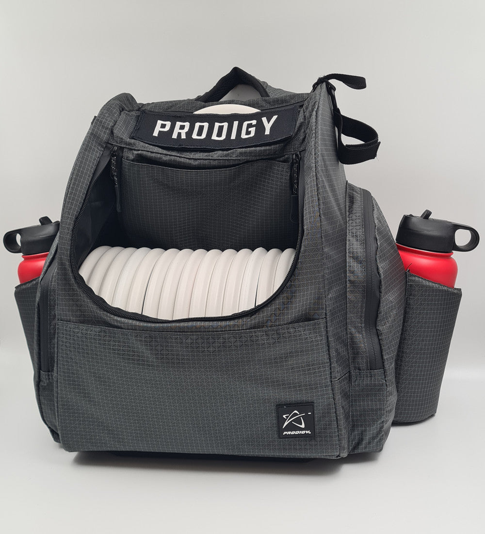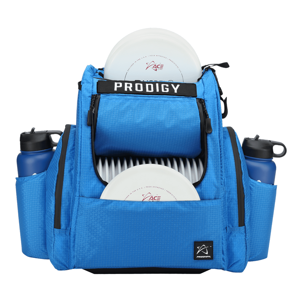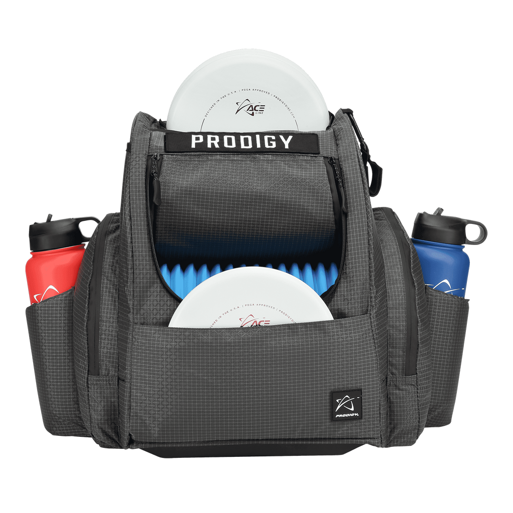 The Prodigy Disc BP-2 V3 comes in with an added burst of color to go along with its already great features. The tear and water resistant Nylon Ripstop Fabric keeps the bag lightweight and durable, while the improved zippers have better pulls and are waterproof and taped for added against the elements.