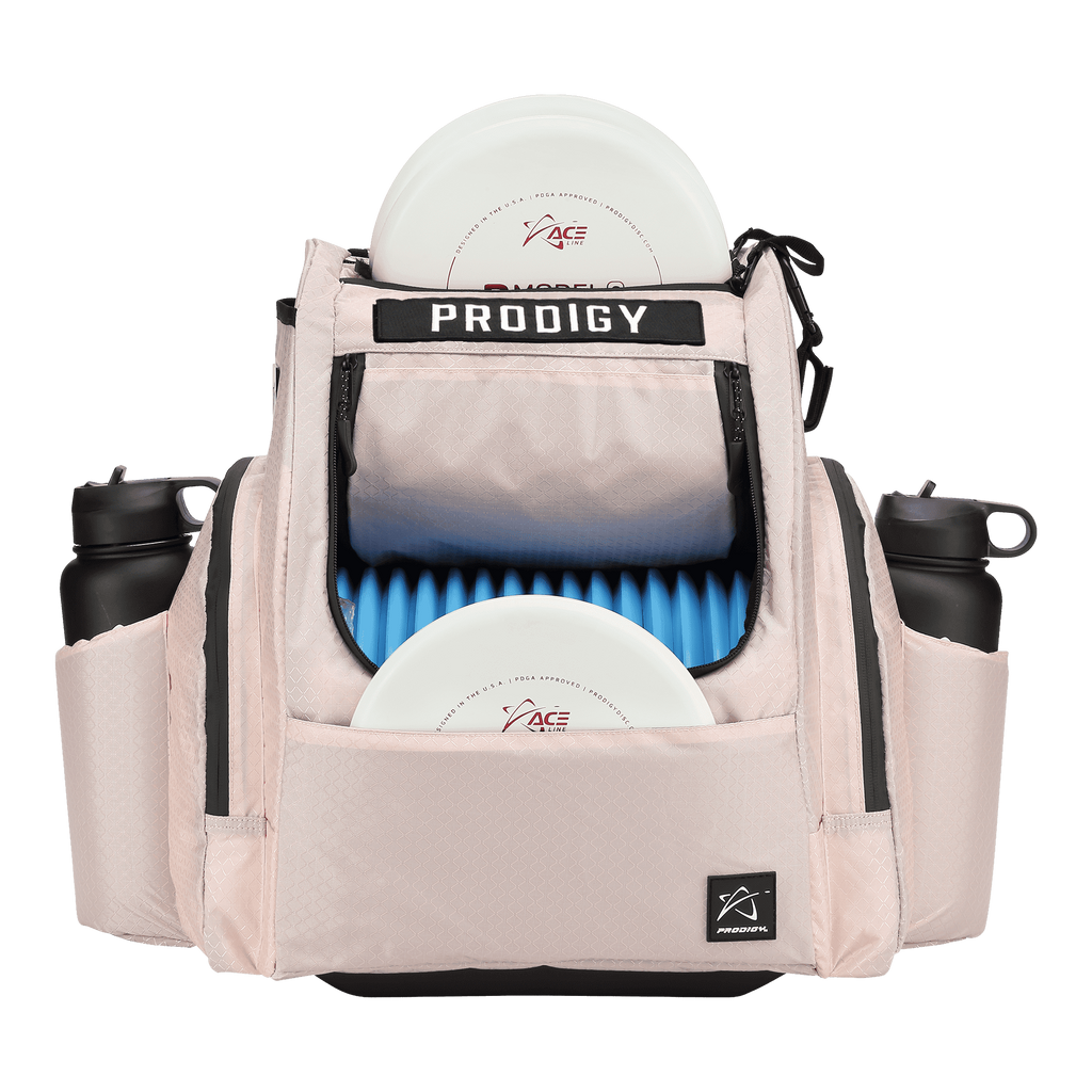 The BP-2 V3 offers a surprising amount of space for a mid-sized bag options, holding approximately 28 discs while offering spacious side pockets. You’ll also find new and improved insulated bottle holders to better keep the temperature of your drink and increased padding on the back and shoulder straps for more comfort. The umbrella holder tops it off to make sure you can carry everything you need for all conditions with ease.