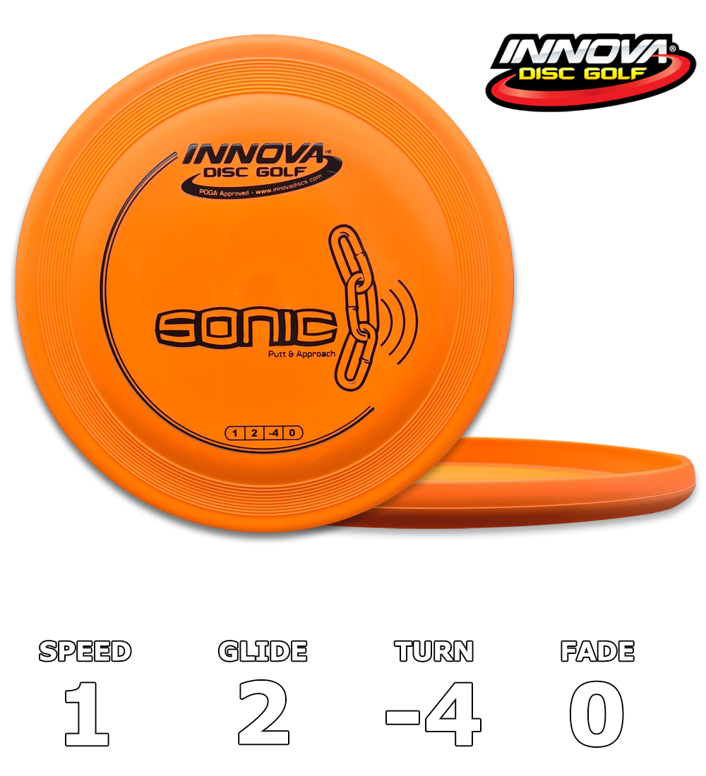 As a putter, the Sonic has a nice straight flight and sticks well in the chains. The Sonic also makes a versatile short range approach and escape disc when thrown sidearm or backhand. For longer approaches, it has a slow predictable turn and likes to land flat for very few roll-aways. This disc is very beginner friendly.