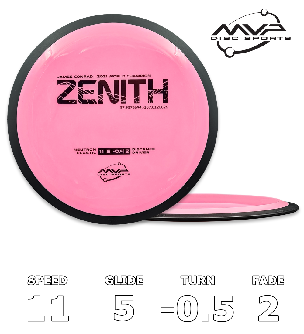 The Zenith was designed by MVP and James Conrad to excel as a stable-overstable distance driver — when placement, distance, accuracy, repeatability, and required, turn to the Zenith.