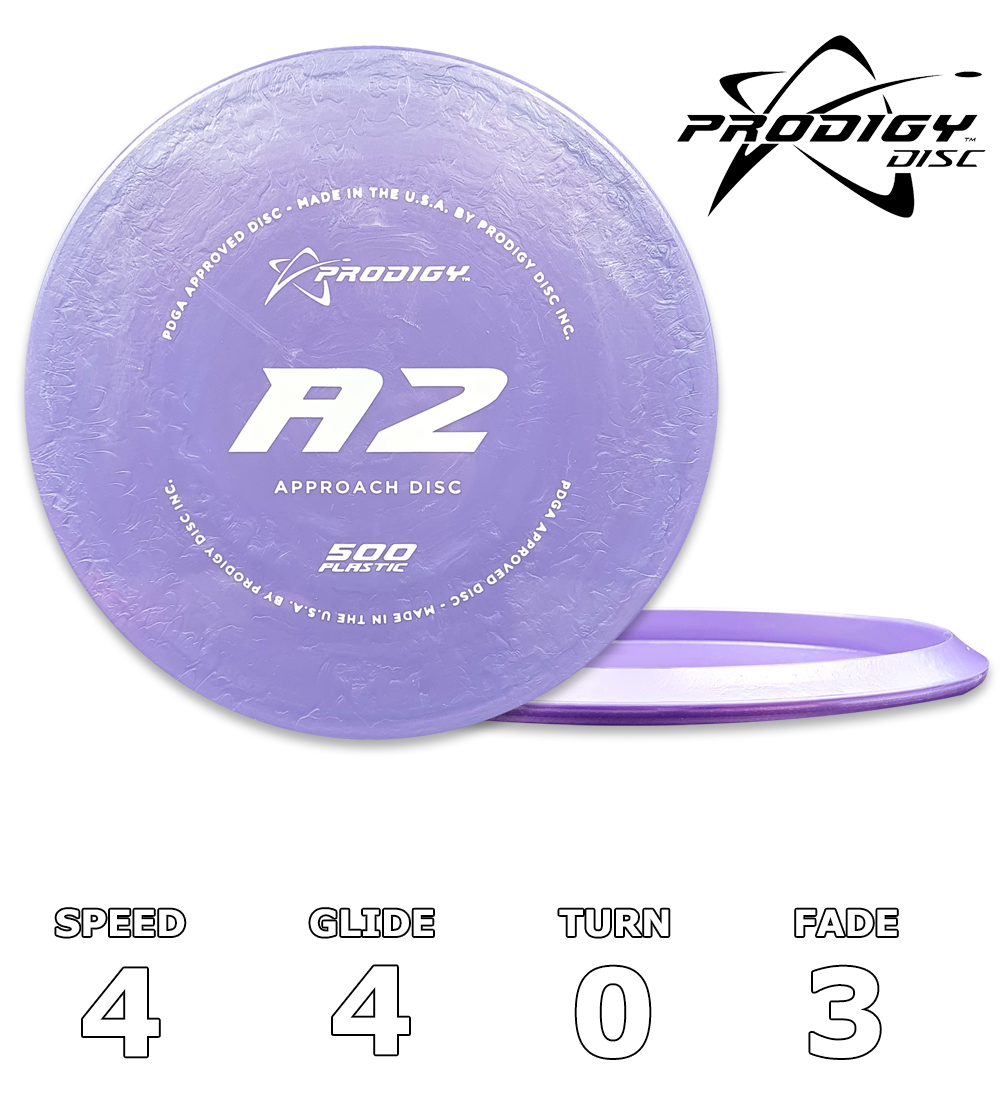 The Prodigy Disc A2 is an overstable utility disc that fills the gap between midranges and putters. The A2 is perfect for power throwers who want to avoid the possibility of their shot turning over. The disc is consistent and reliable in all wind conditions and perfect for short, trick shots as well as high wind approach shots. The A2 is a beadless cousin to the A1 and will fly just slightly less stable than the A1. You can expect and extra 30 to 40 feet of glide than the A1.