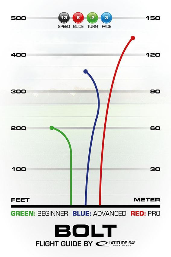 This is one of our more understable distance drivers. It goes fast as a lightning bolt and has a high speed understable flight path with good glide. This is a perfect distance driver for players with slower arm speed that want to throw far. For experienced players with more power the Bolt can still be useful when fast and understable is what you are looking for.