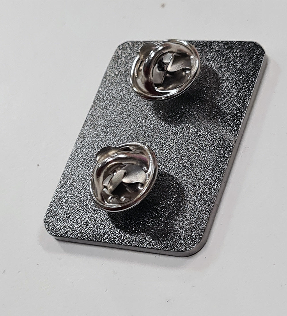 This pin has a double metal butterfly back so you can safely secure it on your disc golf bag, shirt, hat, or choose locking backers if you want to make sure it stays on wherever you choose to put it.