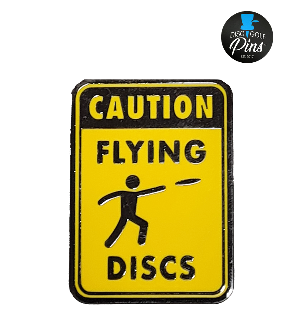 You know when you see this sign, you have arrived at the best place on earth - a disc golf course! This high quality hard enamel pin has bright caution yellow color enamel that will be sure to stand out on any bag. It's approximately 1.5" tall made with a dark nickel finish.