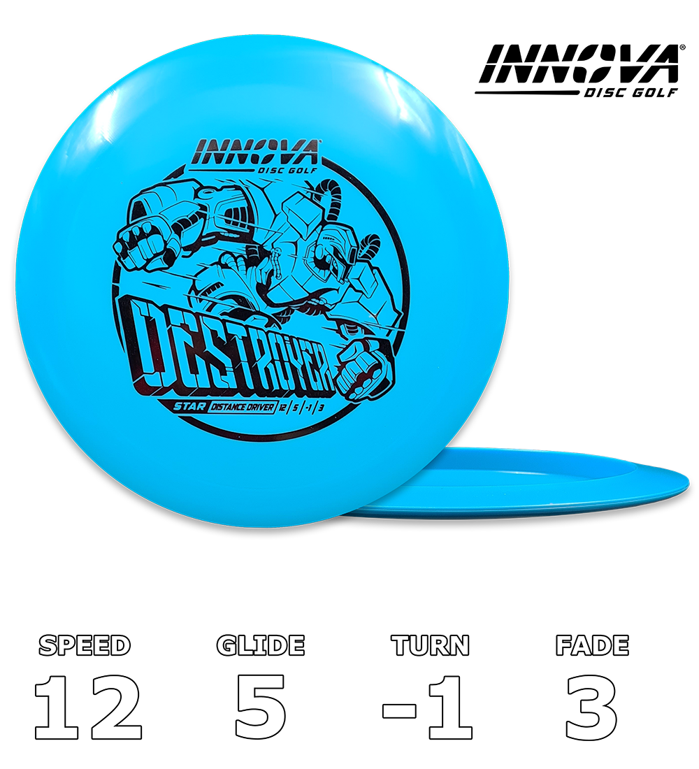 The Destroyer is a very fast stable long distance driver. This disc is much like a faster Wraith, but with a little more high and low speed stability. Great disc for sidearm throwers and those with lots of power. Can handle headwinds and throws with off axis torque. Not suggested for beginning players.