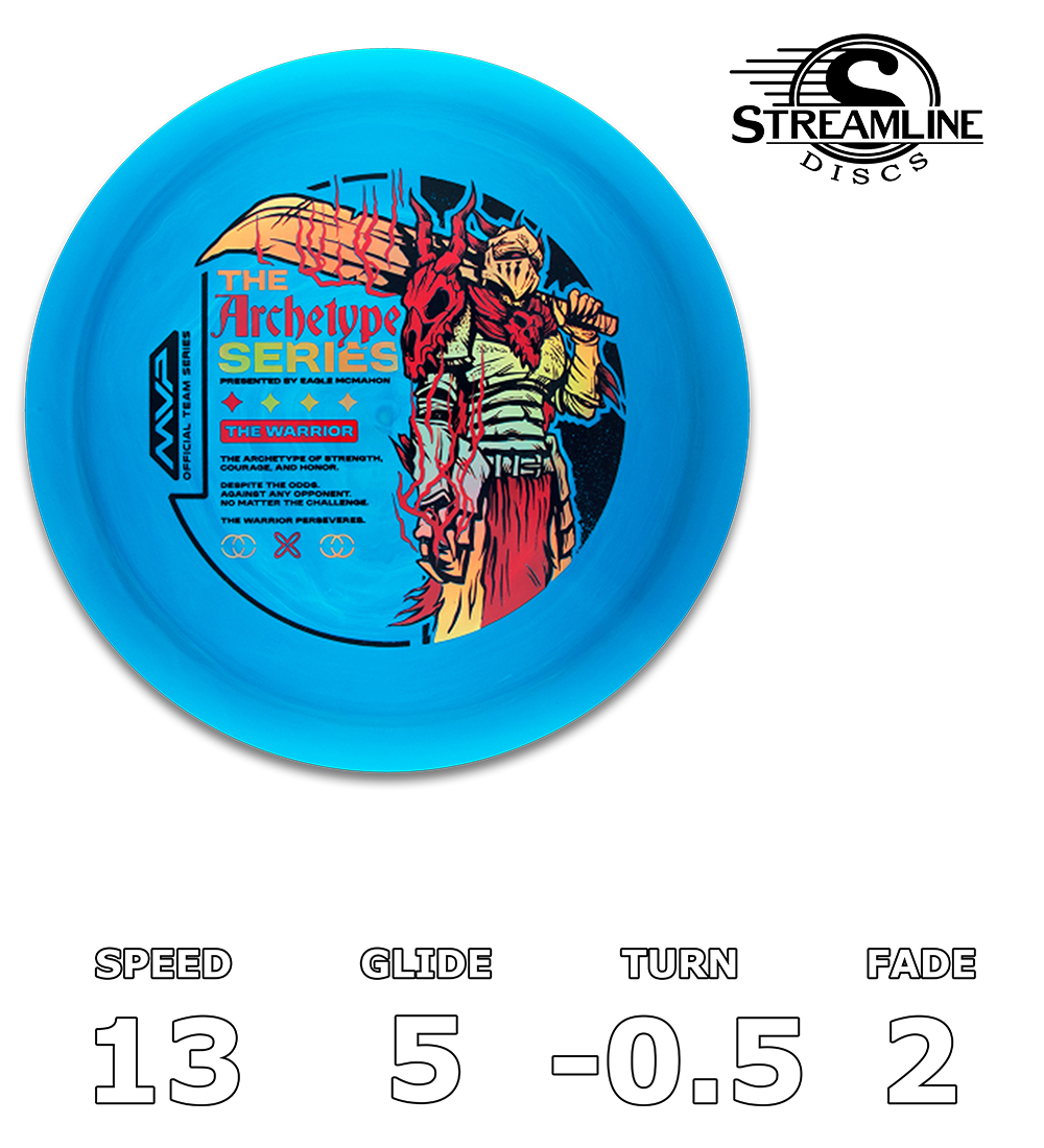 Green C Studio and Eagle McMahon are assembling the adventure party for a new 2026 series – the Archetype Series! The Archetype Series assigns a role to each disc in the series, beginning with the Neutron Engine, AKA The Warrior. With flight numbers of 13 | 5 | -0.5 | 2, the Engine is built from the ground up to be a reliable workhorse driver. As the first 13-speed disc in the Streamline lineup, higher-power players will see the Engine stand up and cruise down the fairway, while average-power throwers will get shorter straight flights with a reliable finish. One thing you can be sure of is that the Engine will fight to stay on whatever line you throw it. Get the first entry in the Eagle McMahon Archetype Series and rev your Engine down the fairway today!