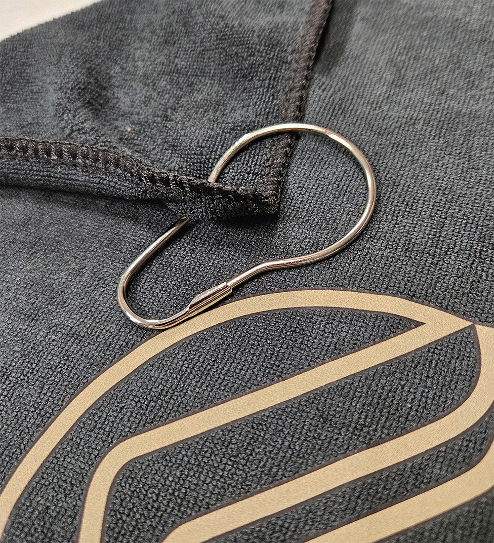 A great accessory to keep in your bag and rep Friction! Comes with a clip to easily attach to your bag. The Friction DG towel works great to clean off a dirty disc. Keep your gloves as clean as possible for maximum grip :)