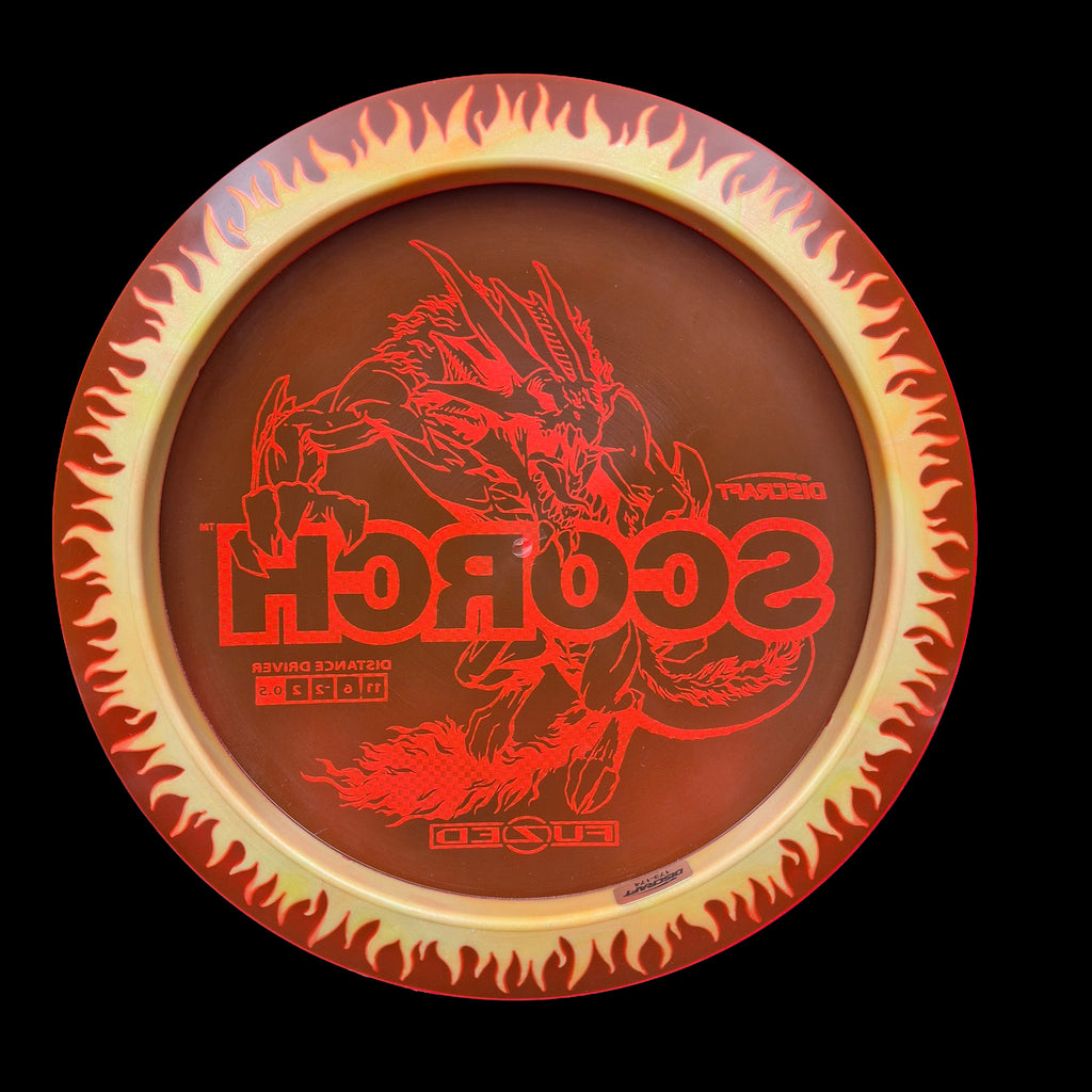 Featuring our special FuZed Line process, each FuZed Line Scorch boasts a vibrant flame-burst effect on the rim. This release of the Scorch is notably domey, adding extra glide for those big turnover shots and hyzer flips that define the Scorch’s signature flight.