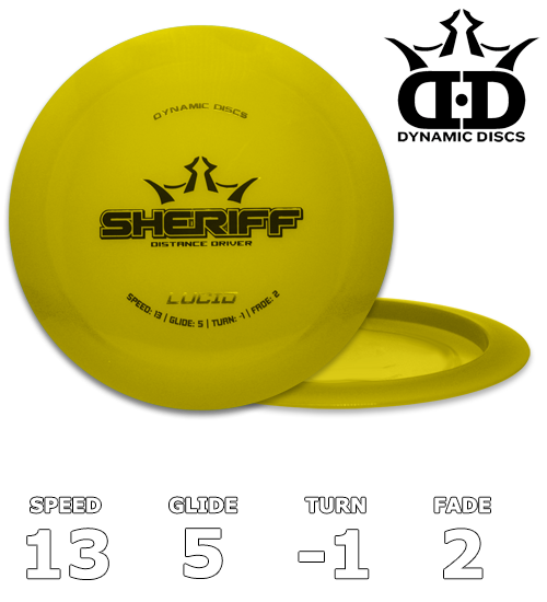 A versatile high-speed disc is hard to find. They are usually too far on one side of the spectrum to be a true multi-tool. Introducing the Sheriff by Dynamic Discs. Long anhyzers, flex shots, pure hyzers; the Sheriff will arrive just in time to protect you from the onslaught of bogeys sure to come without the right disc. Attack the course with a new confidence knowing the Sheriff is standing with you to handle any problems that might arise.