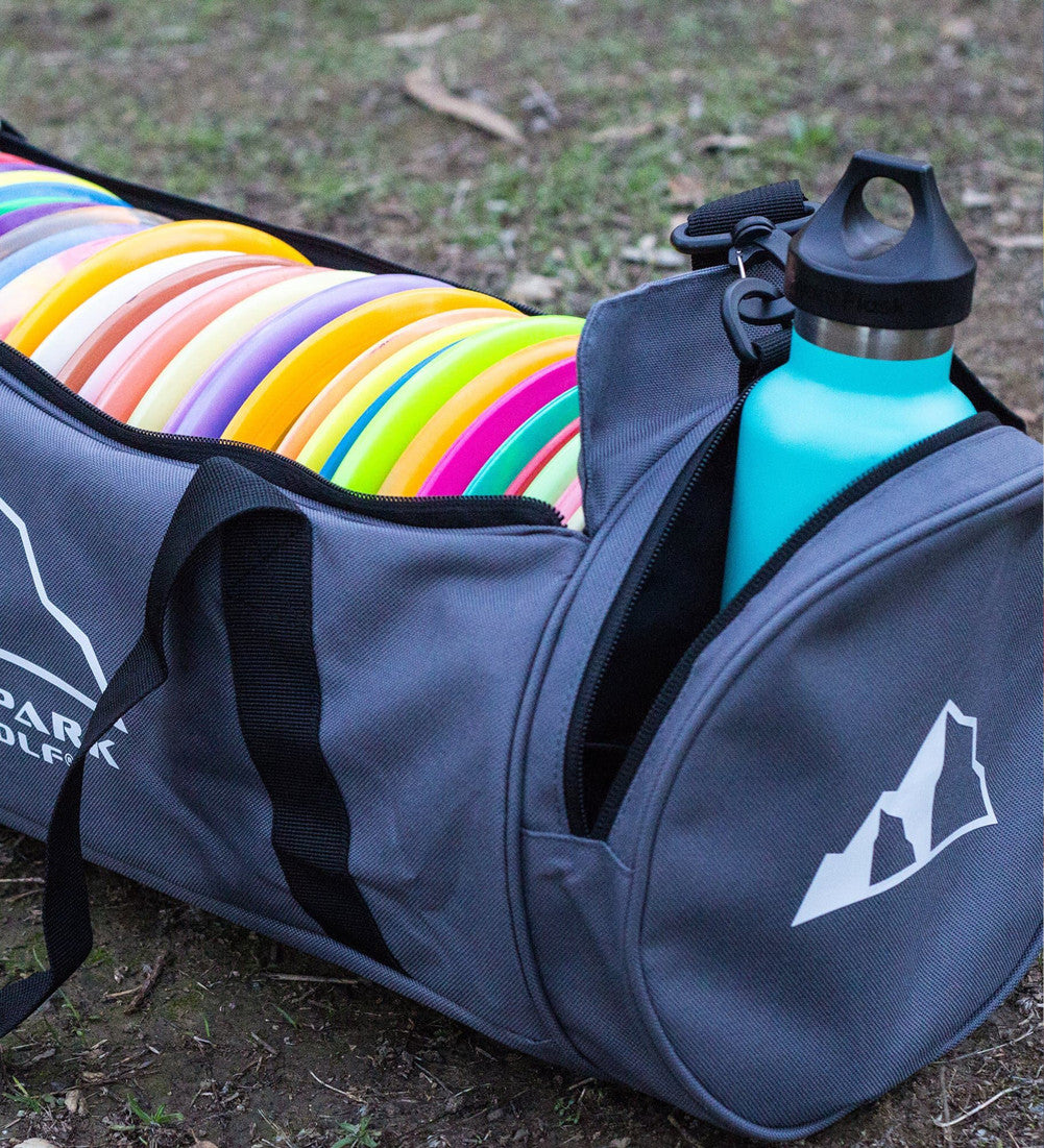 Your discs are everywhere. Stacked in the closet, boxed in your trunk, or scattered across the backyard. It's time to take control of your addiction and give your plastic an organized place to rest. With room for 40 discs, a zippered end pocket and the option to carry the Trainer with the handles or over your shoulder - this bag just became a necessity for your disc golf lifestyle.